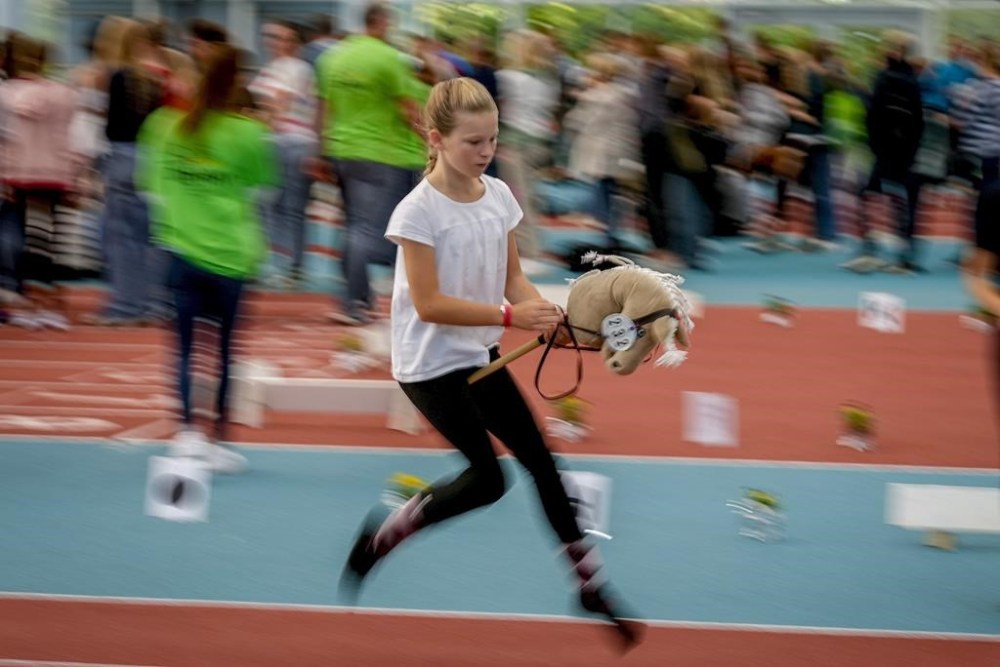 FRANKFURT, Germany (AP) — Germany's first hobby horsing championship got underway in Frankfurt on Saturday, with hundreds of young riders competing in time jumping, style jumping and dressage on their wooden stick horses.