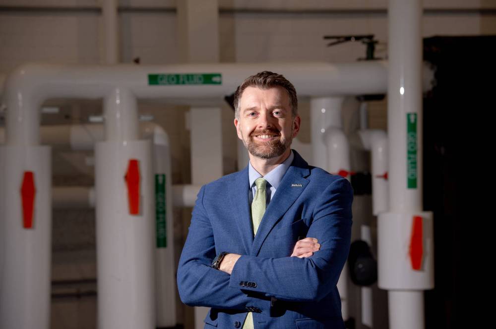 Selkirk CAO Duane Nicol shows off a geothermal heating system inside the Selkirk water treatment plant. The system recycles drinking water to produce heat for the building. Nicol’s believes this is the first system used in a water treatment plant like this and hopes it can be used in future building projects opposed to the typical natural gas units.