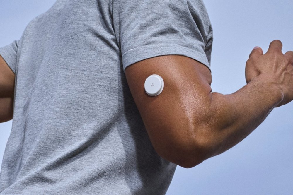 This image provided by Abbott’s Lingo division in July 2025, shows the Lingo wearable device for continuous glucose monitoring. (Abbott/Lingo via AP)