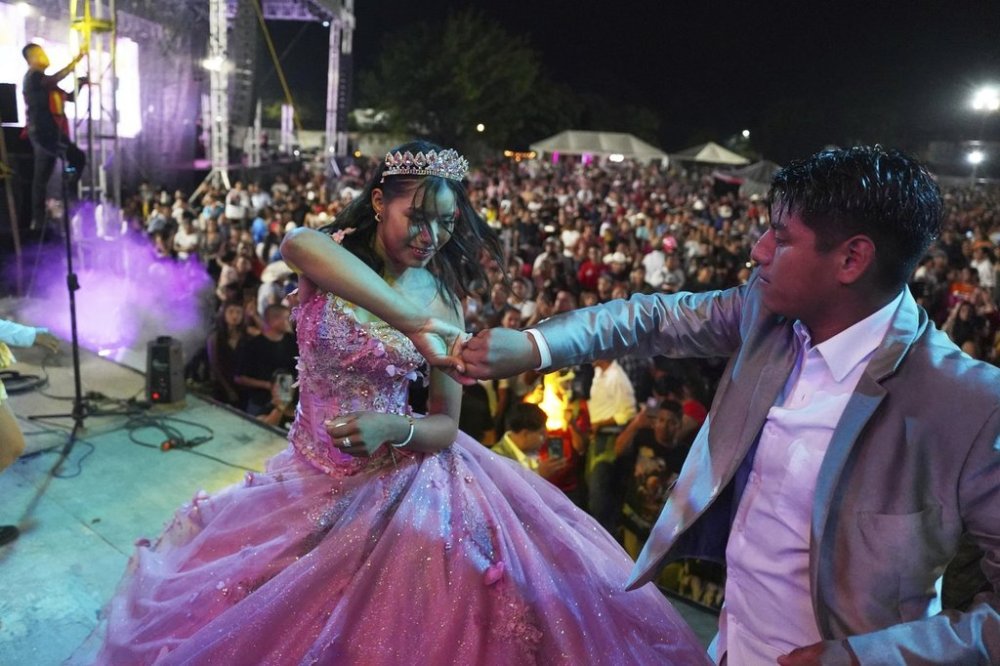 AXTLA DE TERRAZAS, Mexico (AP) — Cameras flashed and reporters crowded around 15-year-old Isela Anahí Santiago Morales as she stepped from a vintage car into the pouring rain. Her friends formed a cordon so she could make it to the stage.