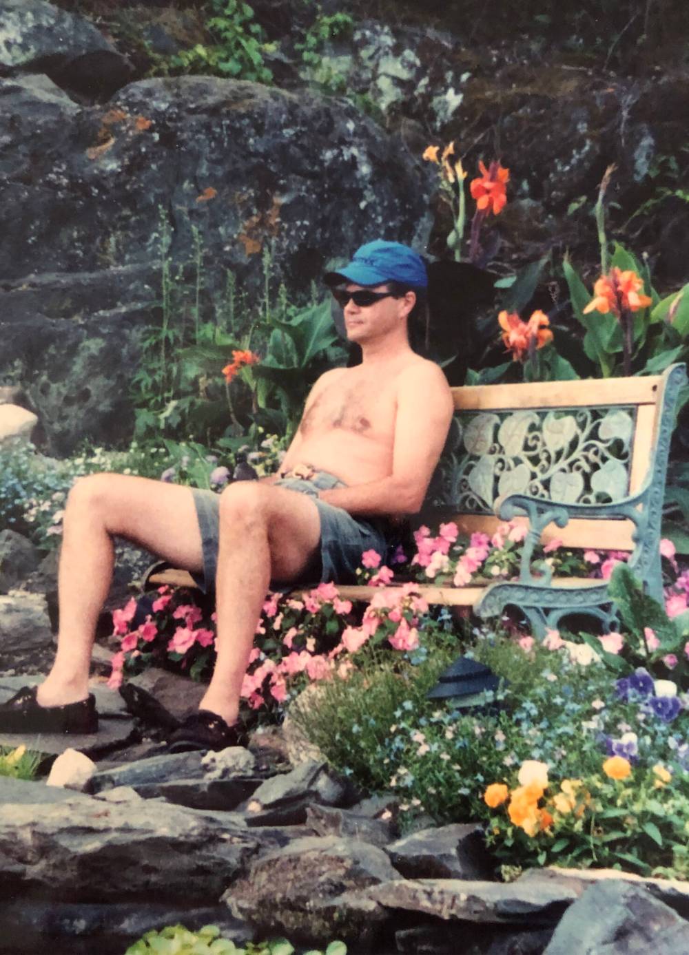 McGarry lounges in the garden he grew at his Lake of the Woods cottage. He was passionate about gardening.