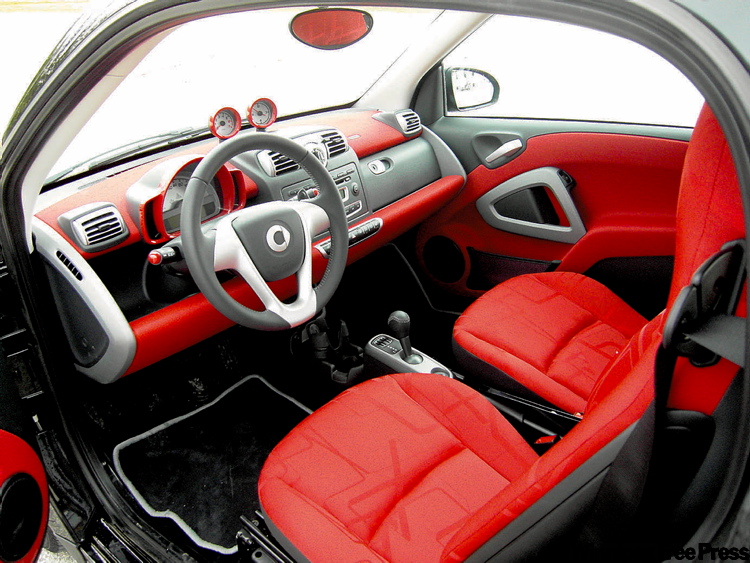 The first thing you notice when you climb into a Smart is just how roomy it is. The seats are both firm and comfortable and the seating position is perfect. You get the feeling that making a decent road trip could be done in total comfort — as long as you don’t plan to bring much along for the ride. With the exception of a tiny compartment behind the seats, there’s very little cargo space. So little that the Smart doesn’t even come with a spare tire.