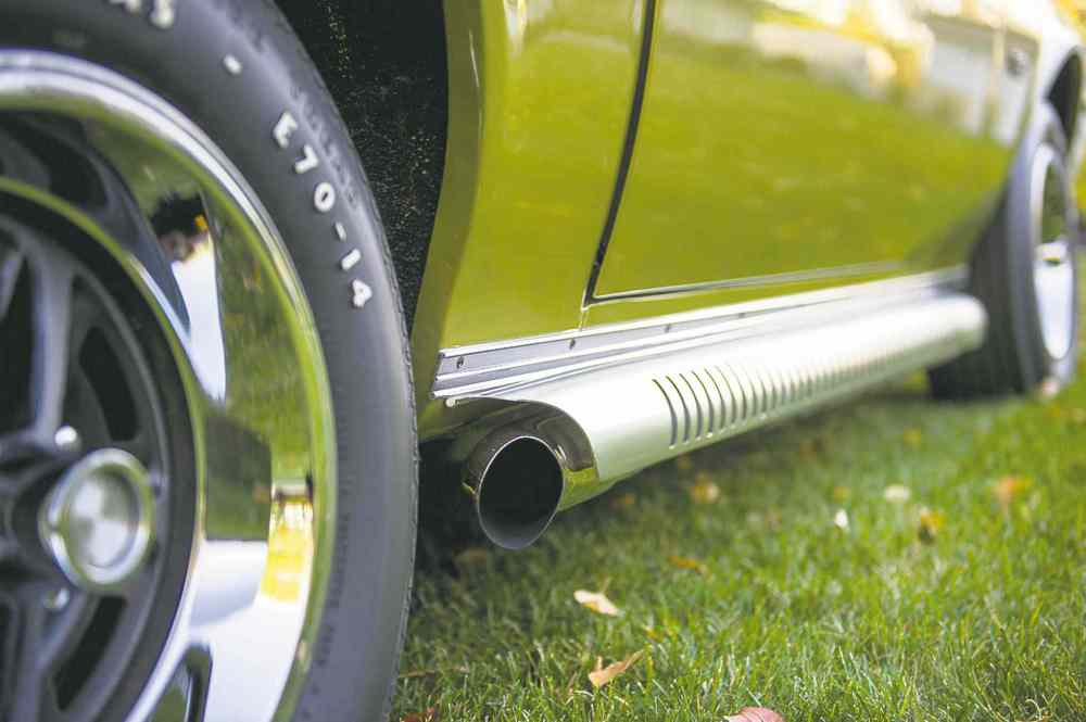 The car’s bumpers and trim were re-plated, straightened and polished by the Chrome Pit to bring back that showroom look. Another optional feature is the rare factory “Sidewinder” side-pipe exhaust package. Fully functional, it gives the AMX a very aggressive exhaust note that car enthusiasts love.