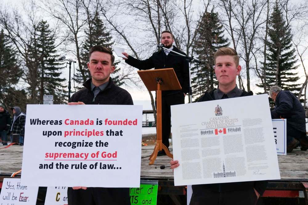 Heinrich Hildebrandt, minister at the Steinbach Church of God — which goes by the name Church of God Restoration in legal documents — said he and others from the 150-member congregation south of Steinbach attended the protest because “we are seeing worldwide oppression against people… our rights are being taken away.”