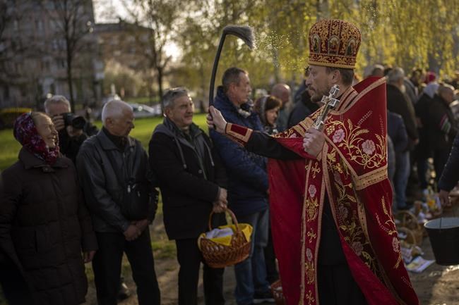 KYIV, Ukraine (AP) — The sun came out as Ukrainians marked Orthodox Easter in the capital, Kyiv, on Sunday with prayers for those fighting on the front lines and others trapped beyond them in places like Mariupol.
