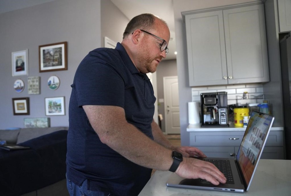 Former Jehovah's Witnesses elder and father of a sexual abuse victim, Martin Haugh, looks through old photos at his home in York Haven, Pa., on Wednesday, April 12, 2023. Haugh and his family left the faith in 2016, and in 2019 he testified in front of a Pennsylvania grand jury about the structure of the denomination and how it handles cases of child abuse. (AP Photo/Jessie Wardarski)