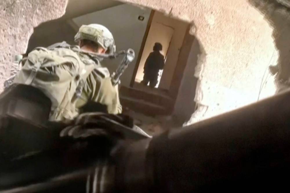 Israeli soldiers wind their way through a hole in a building in Gaza in November, 2023. (Israeli Defense Forces via Thde Associate Press files)