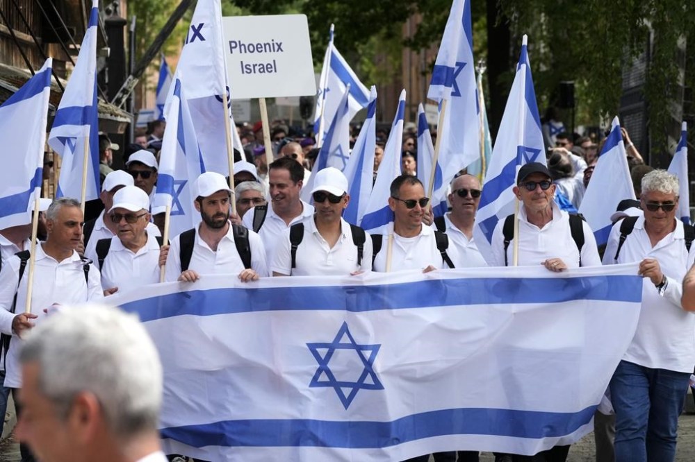In the Polish town of Oswiecim, a small group of pro-Palestinian protesters waving Palestinian flags stood along the side of the road as participants marched with Israeli flags from the Auschwitz site in the Polish town of Oswiecim to that of Birkenau about 3 kilometers (2 miles) away. The area was under German occupation during World War II and today the former death camps are preserved as memorials by the Polish state.