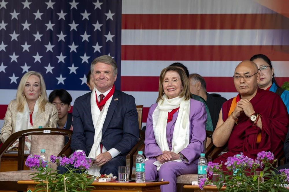 The high-level delegation, led by Republican Rep. Michael McCaul and including Democratic former House Speaker Nancy Pelosi, arrived Tuesday at the hillside town, which the Nobel Peace Prize laureate has made his headquarters since fleeing from Tibet after a failed uprising against Chinese rule in 1959. There, they met with officials from the Tibetan government-in-exile, which wants more autonomy for Tibet.