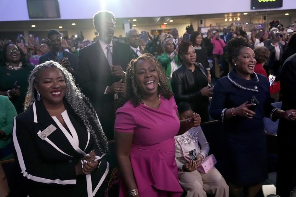 JONESBORO, Ga. (AP) — Kamala Harris on Sunday summoned Black churchgoers to turn out at the polls and got a big assist from music legend Stevie Wonder, who rallied congregants with a rendition of Bob Marley’s “Redemption Song.”