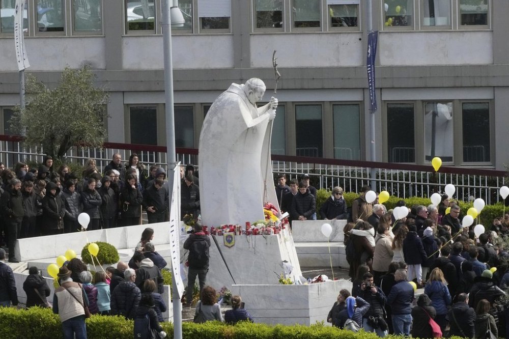 Earlier Sunday, dozens of children — many from war-torn countries, and toting yellow and white balloons — gathered outside Rome’s Gemelli hospital to greet Francis on his fifth Sunday hospitalized. While the pope did not appear from the 10th-floor suite of windows, he thanked them and acknowledged their presence in the traditional Sunday blessing.