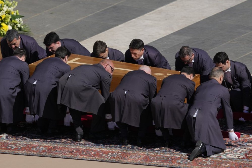 According to Vatican estimates, some 250,000 people flocked to the funeral Mass at the Vatican and 150,000 more lined the motorcade route through downtown Rome to witness the first funeral procession for a pope in a century. They clapped and cheered “Papa Francesco” as his simple wooden coffin traveled aboard a modified popemobile to St. Mary Major Basilica, some 6 kilometers (3.5-miles) away.