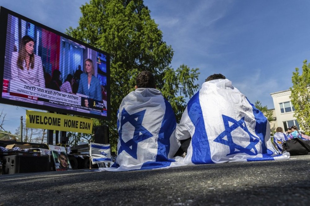 Wearing shirts emblazoned with his name, Alexander’s extended family gathered in Tel Aviv to watch the release. They chanted his name when the military said he was free, while in the city’s Hostage Square, hundreds of people broke out into cheers.