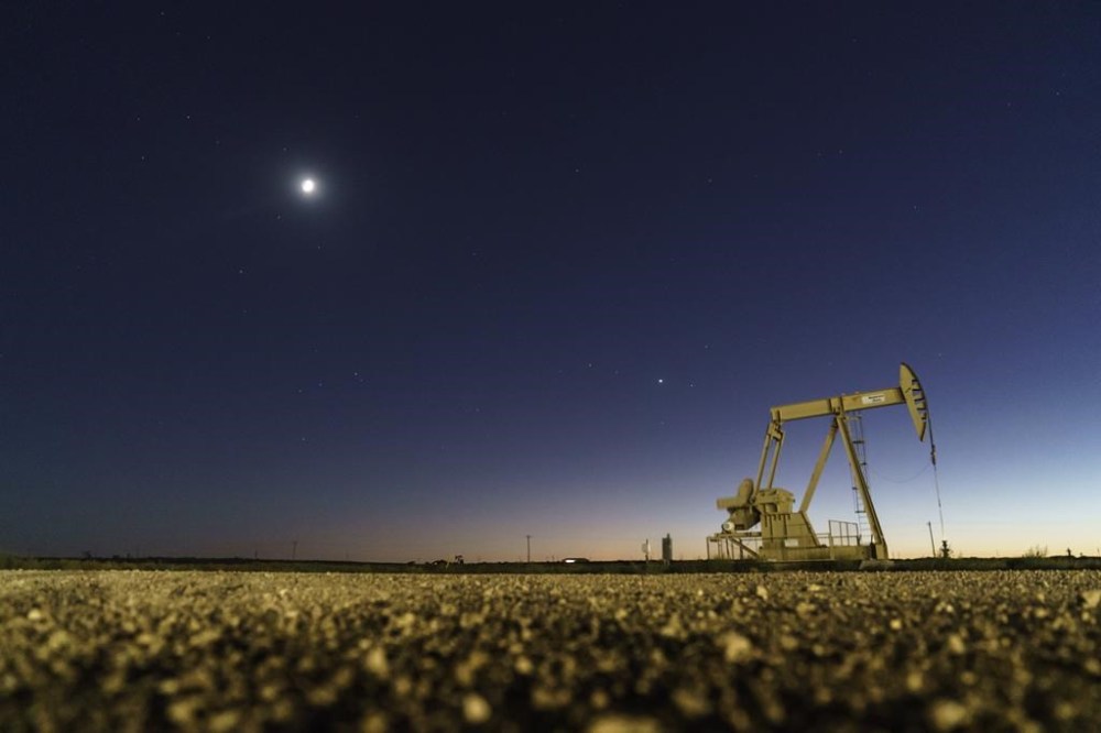 An oil pumpjack operates under a partial moon in the Permian Basin in Stanton, Texas, Monday, Oct. 11, 2021. Massive amounts of methane are venting into the atmosphere from oil and gas operations across the Permian Basin, new aerial surveys show. The emission endanger U.S. targets for curbing climate change. (AP Photo/David Goldman)