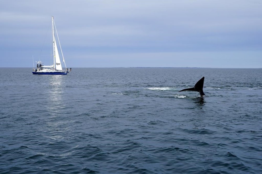 PORTLAND, Maine (AP) — On a breezy spring day, scientists and conservationists methodically conducted experiments near 15 North Atlantic right whales that occasionally spouted and surfaced in a bay south of Boston.