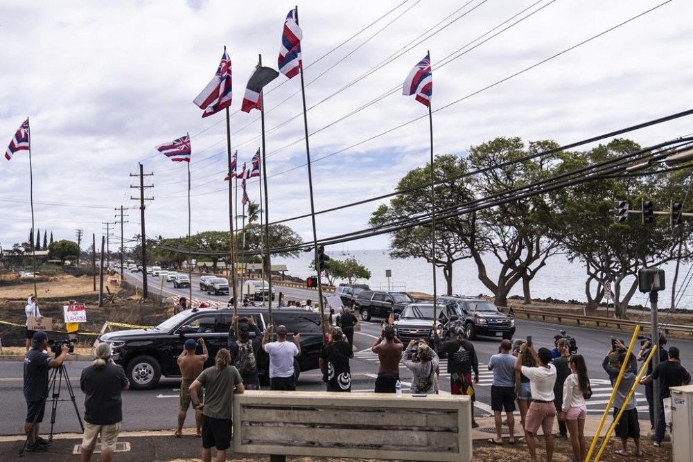 Dozens gathered on the streets of Lahaina to watch Biden’s motorcade wind its way through the community. Some greeted the president enthusiastically, but others appeared to be waving their middle fingers at the motorcade. Other island residents held up signs urging Biden “to listen to the people of Lahaina” and to send more aid.