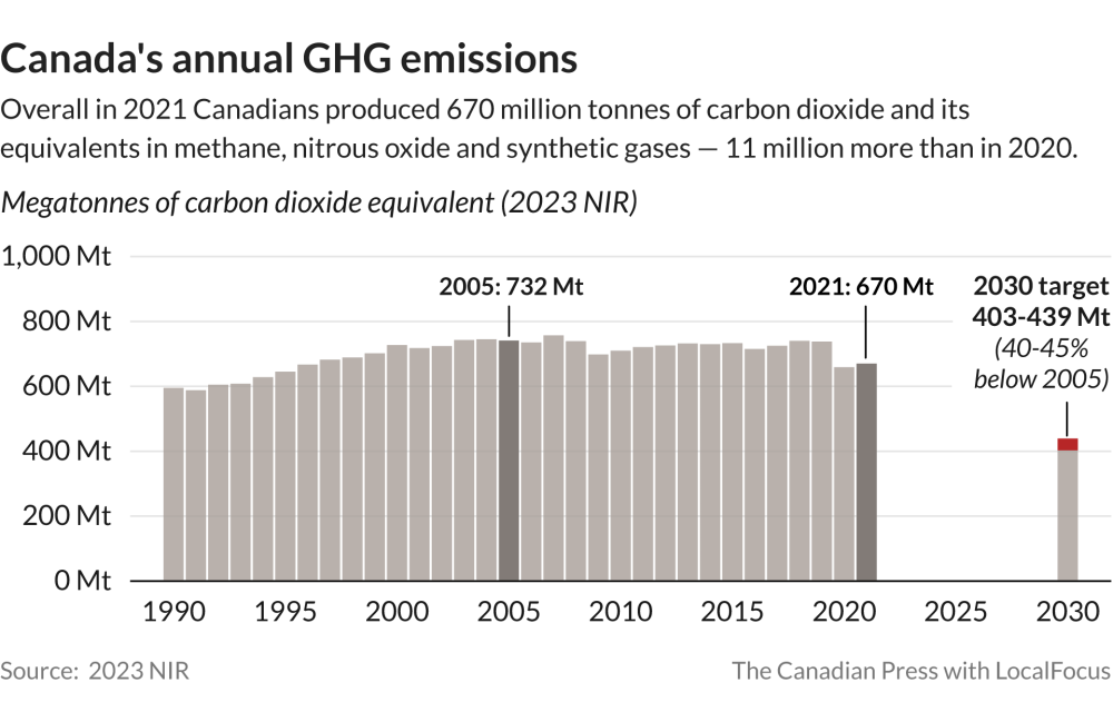 The plan, published last year, is a requirement under the federal net-zero accountability law passed in 2021. It is supposed to lay out a road map for Canada to hit its emissions targets, including the next big one in 2030.