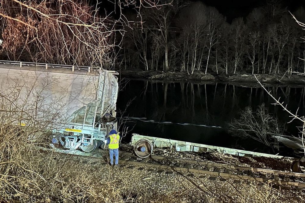 10 cars of cargo train carrying cooking oil and plastic pellets derail. Two land in New York river