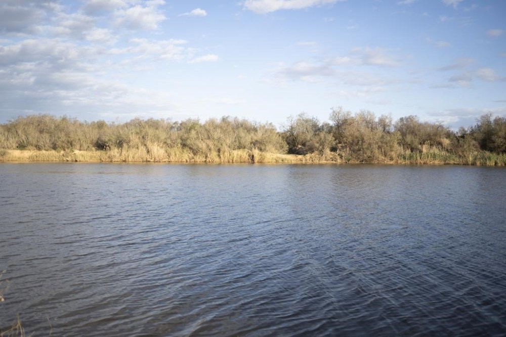 The Moulouya River is visible in Nador, Morocco, Friday, March 8, 2024. Where the river once flowed from the mountains into the Mediterranean, it now sits stagnant, allowing seawater to creep inland and turning water from a source of life to a deadly poison. (AP Photo/Mosa'ab Elshamy)
