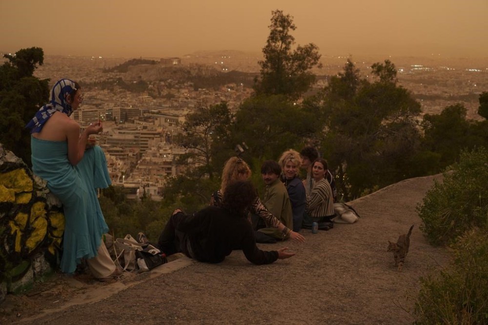 Strong southerly winds carried the dust from the Sahara Desert, giving the atmosphere of the Greek capital a Martian-like filter in the last hours of daylight.