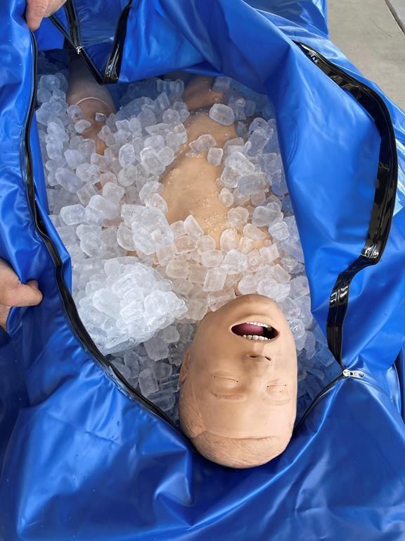 Prato demonstrated the potentially lifesaving method earlier this week outside the emergency department of Valleywise Health Medical Center in Phoenix, packing ice cubes inside an impermeable blue bag around a medical dummy representing a patient. He said the technique could dramatically lower body temperature in minutes.