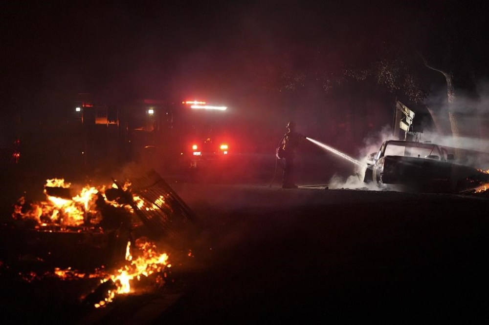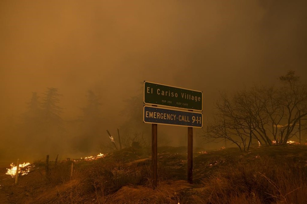 In El Cariso Village, a community of 250 along Highway 74 in Riverside County, an Associated Press photographer saw at least 10 homes and several cars engulfed in flames.