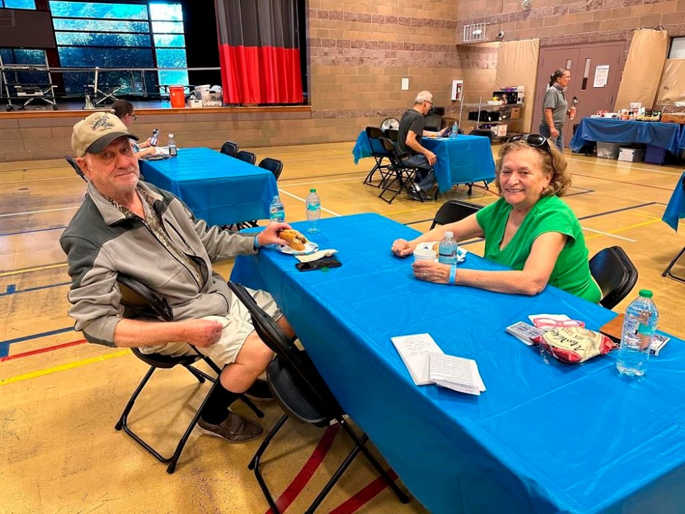 Rich Meyr and Evelyn Kelley were the first arrivals at an evacuation center set up Wednesday at a recreation center in south Reno. Both said they refused to evacuate previous fires but decided to play it safe this time.