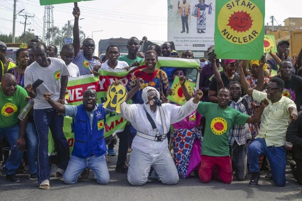 Some chanted anti-nuclear slogans while others carried placards with “Sitaki nuclear”, Swahili for “I don’t want nuclear.”