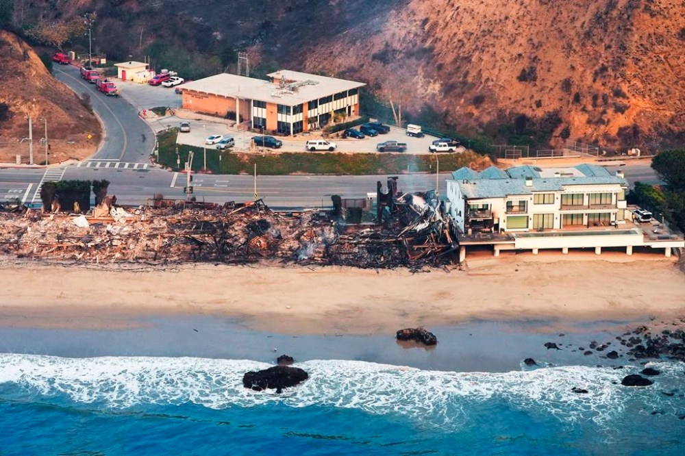 Beach front properties are left destroyed by the Palisades Fire, in this aerial view, Thursday, Jan. 9, 2025 in Malibu, Calif. (AP Photo/Mark J. Terrill)
