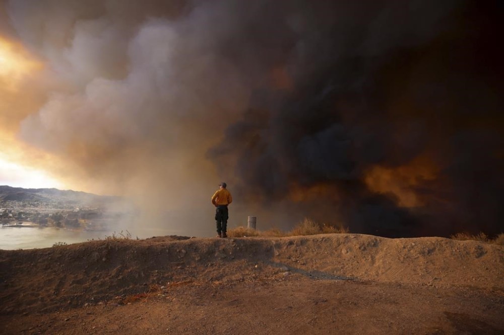 A 30-mile (48-kilometer) stretch of the major north-south artery had been closed for emergency vehicles, to move equipment and to prevent accidents due to smoke billowing across the freeway. Crews on the ground and in water-dropping aircraft tried to prevent the wind-driven fire from moving across the interstate and toward Castaic.