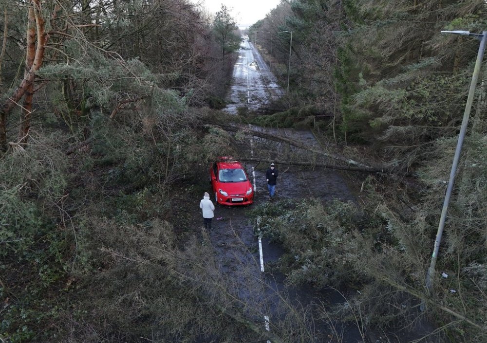 At least two people died during the storm. Kacper Dudek, 20, was killed when a tree fell on his car in County Donegal in northwest Ireland, local police said.