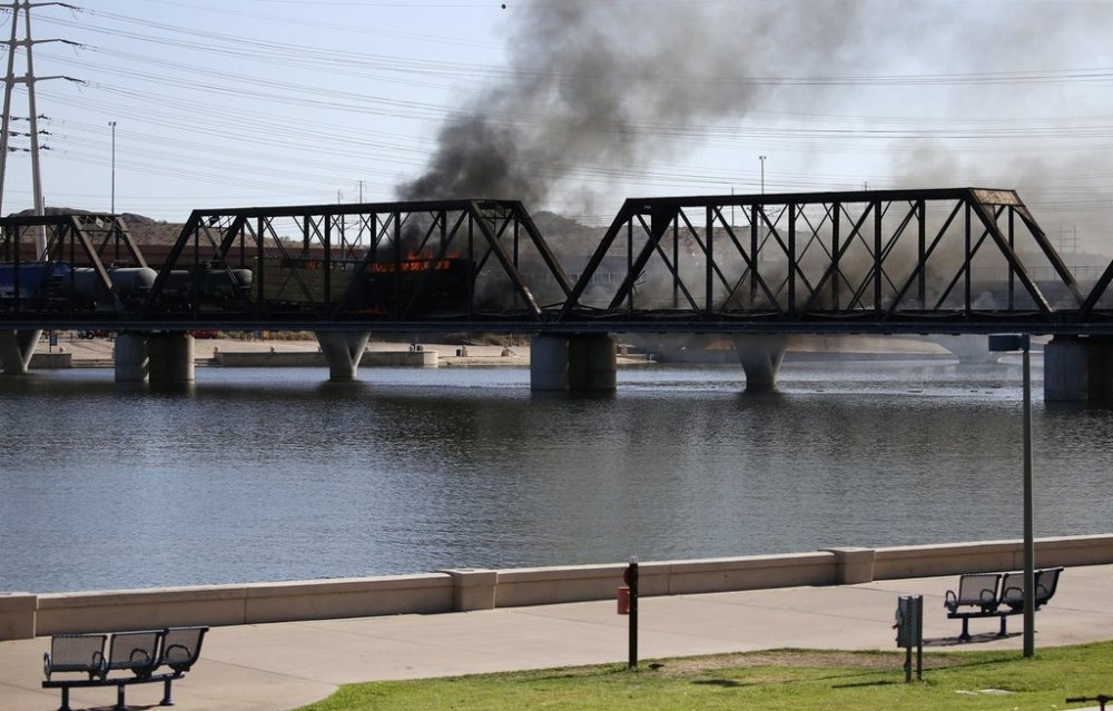In July 2020, a Union Pacific derailment near the Tempe Town Lake in Arizona prompted train cars to strike the bridge and cause a portion of it to collapse. A fire started and more than 2,000 gallons (7,500 liters) of flammable chemicals leaked.