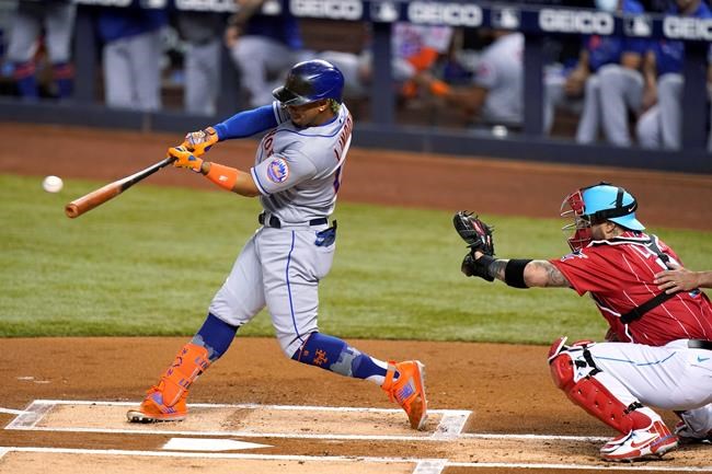 Rookie Lee finally makes contact, Mets beat Marlins in 12th