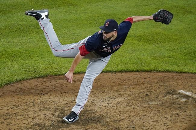 Boston Red Sox's Matt Barnes delivers a pitch during the ninth inning of a baseball game against the New York Yankees, Friday, June 4, 2021, in New York. (AP Photo/Frank Franklin II)