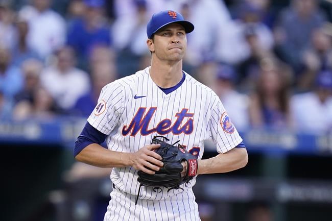 NEW YORK (AP) — Mets ace Jacob deGrom left his start Wednesday night with right shoulder soreness after three perfect innings, yet another injury scare for the two-time NL Cy Young Award winner amid a historic start to this season.