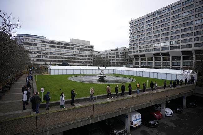 LONDON (AP) — The omicron variant is spreading so rapidly it has the potential to overwhelm Britain’s hospitals, highlighting the need to strengthen coronavirus restrictions and speed up the delivery of booster vaccine shots, the country’s health minister said Tuesday.