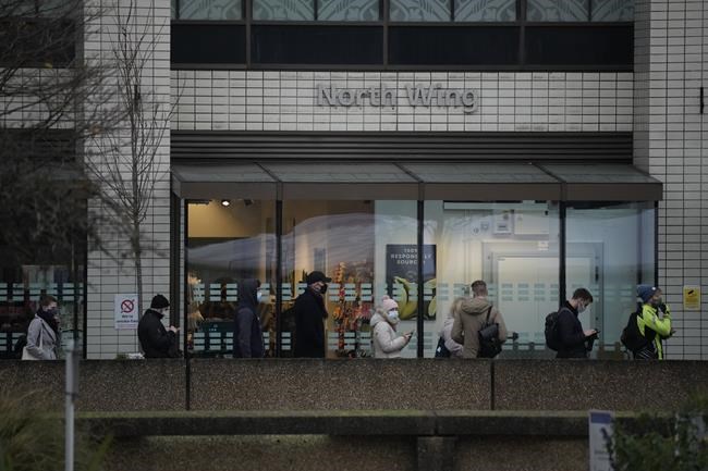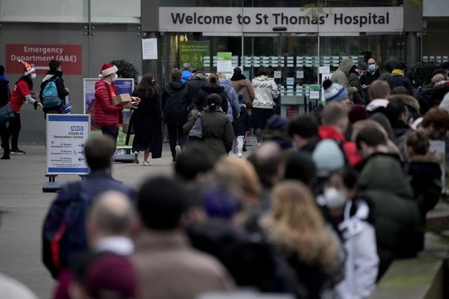 U.K. authorities have said the number of omicron infections is doubling every two to three days and the variant is likely to become the dominant form of COVID-19 throughout the country in days.