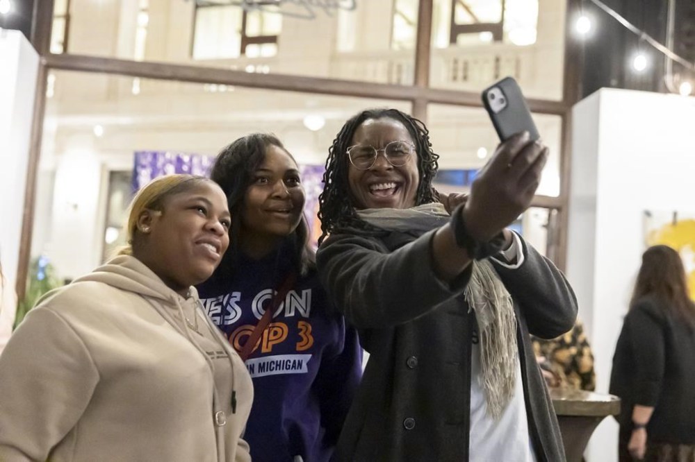 Supporters take a photo at a watch party for Michigan Proposal 3 at the David Whitney Building in Detroit on Election Day, Tuesday, Nov. 8, 2022. (Ryan Sun/Ann Arbor News via AP)