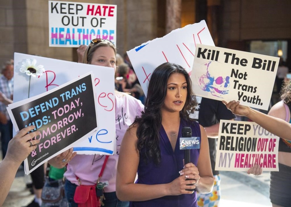 The mood in the Nebraska Capitol has been volatile since lawmakers on Tuesday advanced by a single vote the hybrid measure that ties together restrictions that Republicans have pursued across the U.S. One lawmaker, Omaha state Sen. Megan Hunt, disclosed in March that her teenage son is transgender and said Friday that she now plans to leave the state.