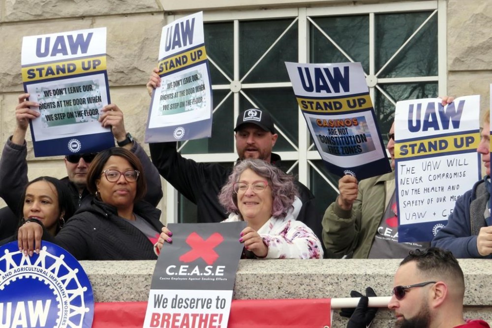 At a rally outside the courthouse where the litigation was filed, workers said they are employing new tactics to ban smoking in the casinos after thus far failing to convince legislators to do it.