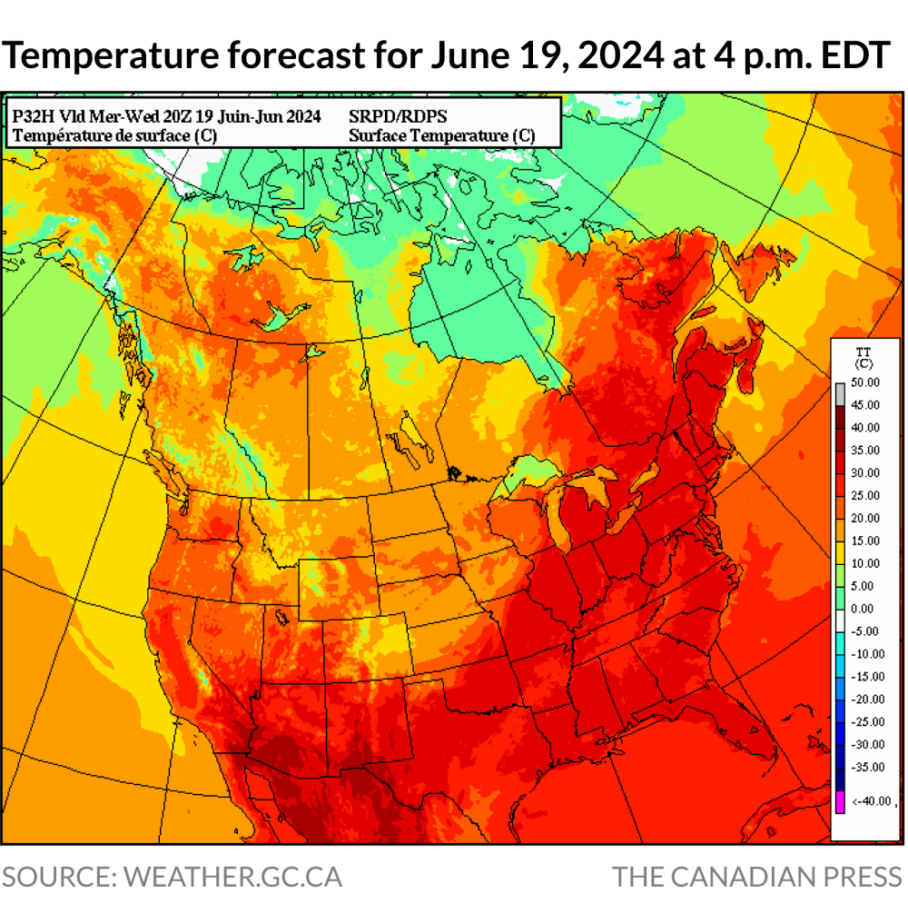 The high humidity and relatively high nighttime temperatures are making this week’s weather especially gruelling, Smith said Wednesday during a federal government news conference. “People are not able to cool off for an extended period of time,” she said. “It will be a muggy, hot few days for Eastern Canada.”