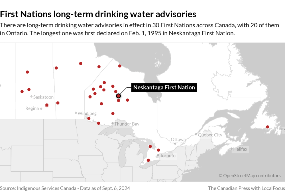 But those advisories still exist in 30 First Nations – 20 of them in Ontario and none as long as Neskantaga’s.