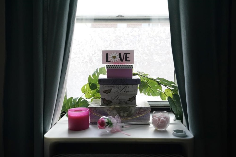 “Look, I even have it for decoration,” she said. Her three window units are usually topped by flowers and decorative candles. In one room on a particularly sunny day, morning light shone on a rose, a jar of rose petals, decorative boxes and a “LOVE” sign atop one of them.