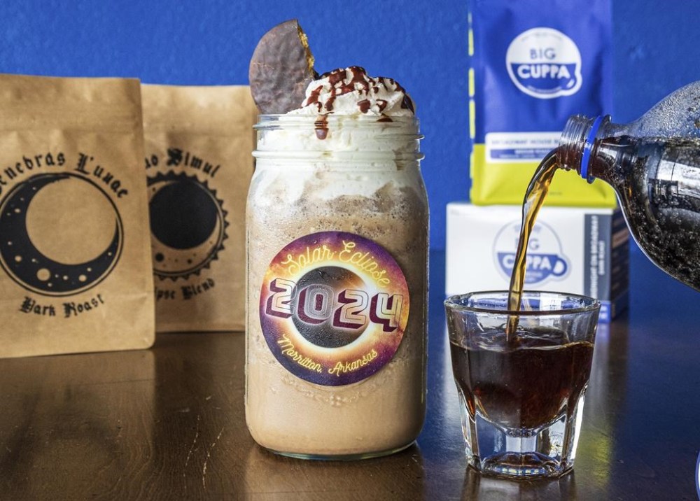 The eclipse-themed beverages don’t stop at beer. Big Cuppa, a coffee shop in Morrilton, Arkansas, also has a full eclipse menu with a handful of specialty drinks. Its “Moon Pie Frappa” is a blended Moon Pie drink flavored with dark chocolate and toasted marshmallow.