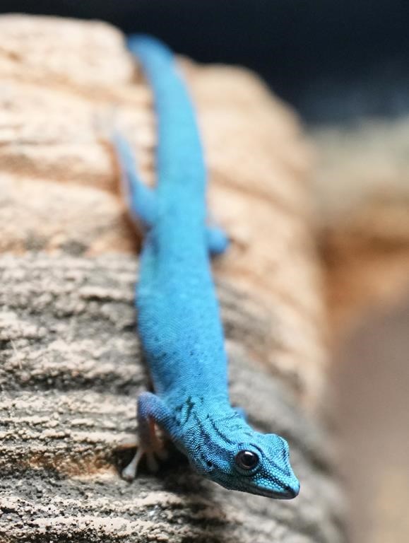 A Turquoise Dwarf Gecko at London Zoo's new experience, The Secret Life of Reptiles and Amphibians ahead of its opening to the public on Friday March 29, in London, Monday, March 25, 2024. (AP Photo/Kirsty Wigglesworth)