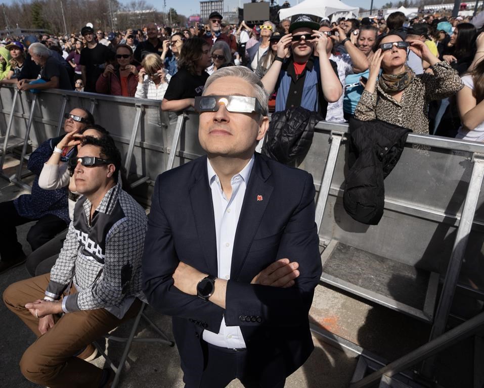 As darkness descended, Poilievre — from behind a pair of standard-issue eclipse glasses — described the moment as “surreal.”