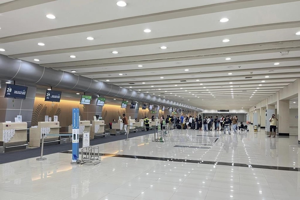 In this photo provided by the Indonesian Transportation Ministry, people inquire about their flight change at the closed Sam Ratulangi Airport in Manado, North Sulawesi, Indonesia, Friday, April 19, 2024. Indonesian authorities closed the airport and residents left homes near an erupting volcano Thursday due to the dangers of spreading ash, falling rocks, hot volcanic clouds and the possibility of a tsunami. (Indonesian Transportation Ministry via AP)