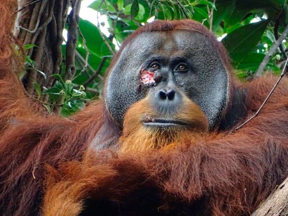 Scientists observed Rakus pluck and chew up leaves of a medicinal plant used by people throughout Southeast Asia to treat pain and inflammation. The adult male orangutan then used his fingers to apply the plant juices to an injury on the right cheek. Afterward, he pressed the chewed plant to cover the open wound like a makeshift bandage, according to a new study in Scientific Reports.