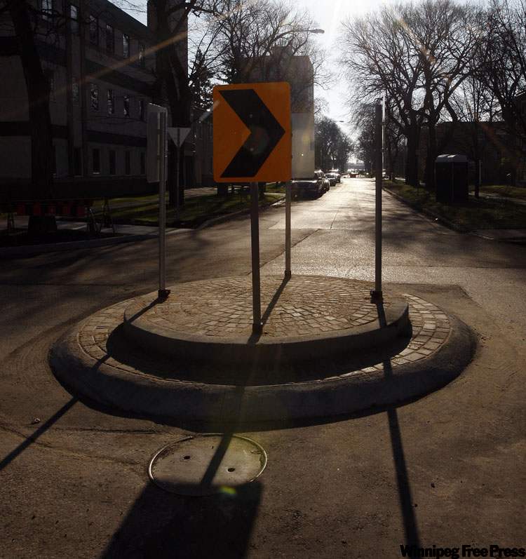 Portions of Nassau Street between Stradbrook Avenue and Pembina Highway are now one way for motor vehicles. Four new traffic circles are also in place.