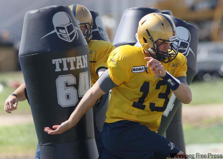 Speaking of quarterbacks, second-year man Alex Brink saw most of the work at practice today. Starter Buck Pierce, who’s dealing with what the team is calling a left thigh bruise, did do some throwing but he was more of a spectator.